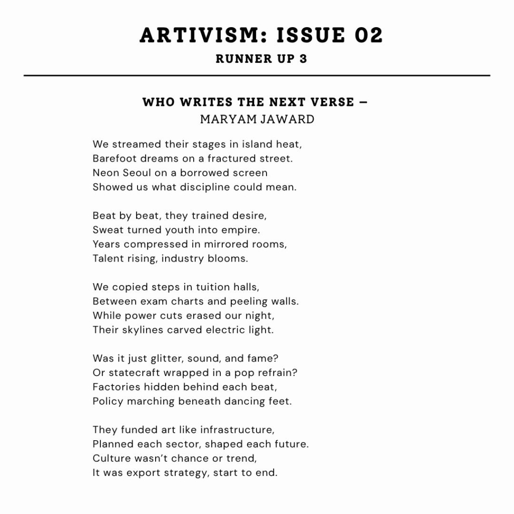 We are delighted to announce the winners of Muragala Artivism Issue 2 on the theme “From KPop to Development Dreams: The East Asian Effect“