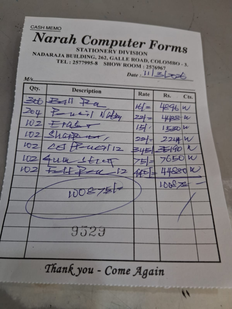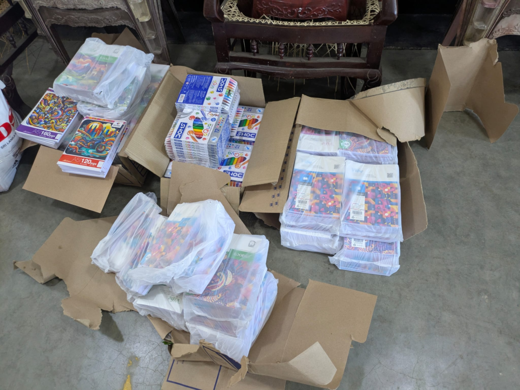Families impacted by the cyclone were identified by local officials. These families included those directly affected by the cyclone, as well as those whose employment and livelihoods were disrupted due to businesses closing as a result of the disaster. One urgent need identified was the provision of school supplies for children from approximately 800–900 families. Given our available funds, we were only able to provide support for 102 families. Tokens were issued by the DS office to these families for the distribution.
